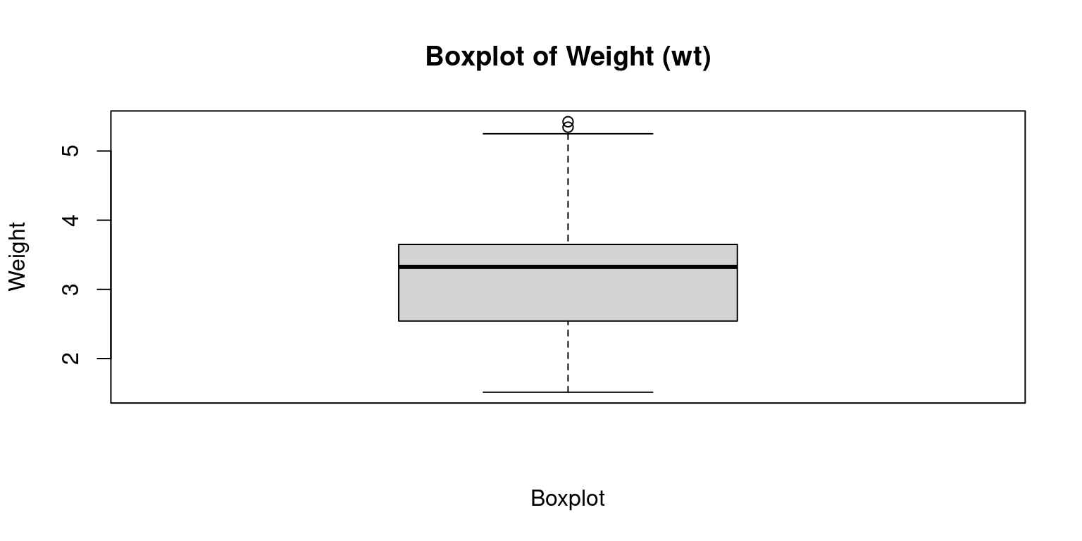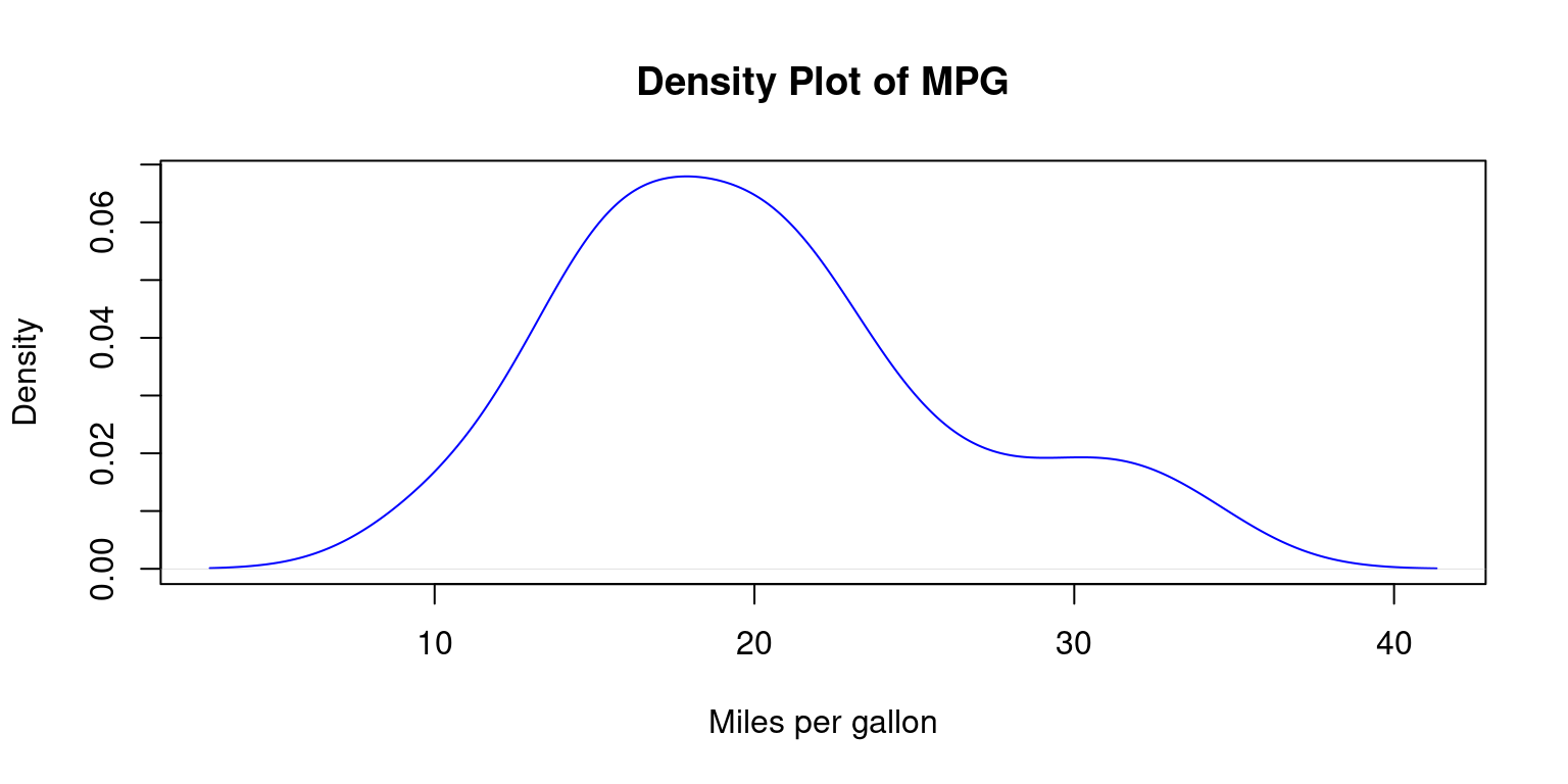 summary(mtcars$mpg) Min. 1st Qu. Median Mean 3rd Qu. Max.